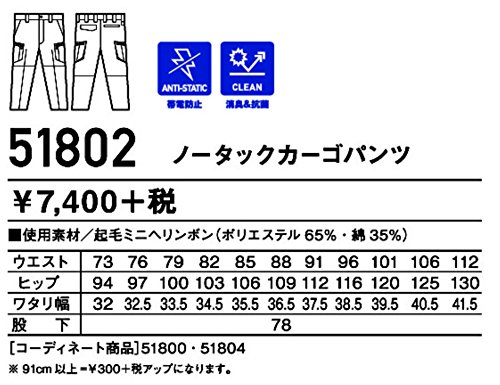 自重堂 JAWIN ノータックカーゴパンツ 51802 ミストブルー 96サイズ
