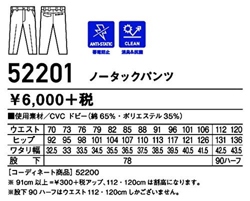 自重堂 JAWIN ノータックパンツ 52201 ネービー 82サイズ