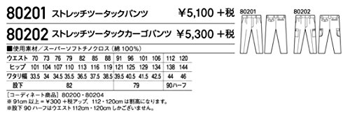 自重堂 JICHODO ストレッチツータックパンツ 80201 アースグリーン 85サイズ