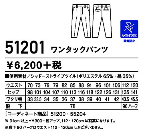 自重堂 JAWIN ワンタックパンツ 51201 シツクブラツク 79サイズ