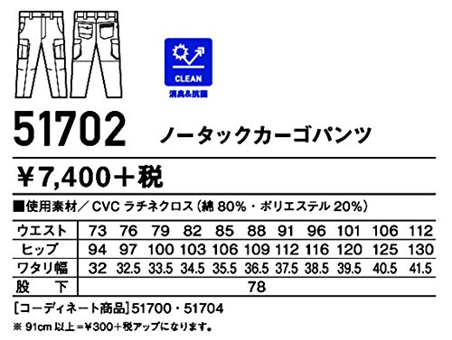 自重堂 JAWIN ノータックカーゴパンツ 51702 シルバー 85サイズ