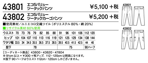 自重堂 JICHODO エコ5バリューツータックパンツ 43801 スモークグリーン 91サイズ