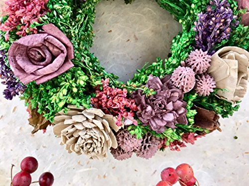 ドライフラワーなどの天然素材でできた、ナチュラルな雰囲気のリースです。 玄関やお部屋のドアにかけたり、シェルフに立てかけてディスプレイしたり、季節を問わずお楽しみいただける色味でご用意しました。 可愛らしくも、シックにも。表現に合わせて表情を変えるピンク色を基調としたリースです。 天然の素材を用いた手作りの製品のため、色やサイズ、形に固体差があります。 全てを手作業で仕上げているため、まれに素材の一部が取れたりパッケージ内部に混入している場合があります。取れた素材は、市販の木工用ボンドなどで簡単に修復いただけます。 また、保存やご使用時は、湿気の多い場所、直射日光の当たる場所を避けてください。