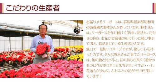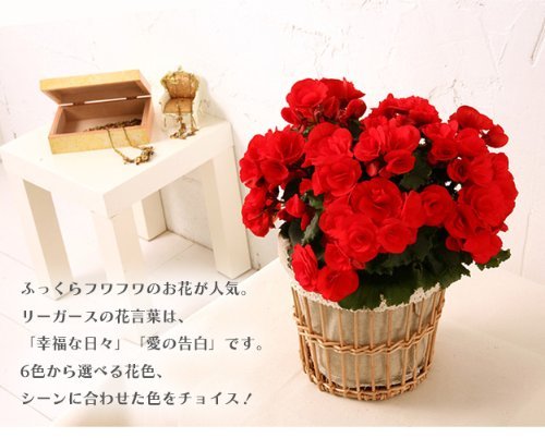 ふっくらとしたお花が人気のリーガース鉢植えです。育て方も簡単で室内でお楽しみいただけます。