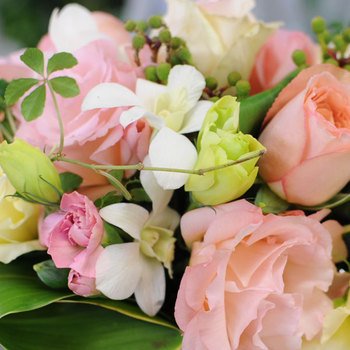 ピンク系の上品なアレンジメント。お誕生日・記念日・結婚の祝い・お見舞い…etc幅広いご用途に最適です。