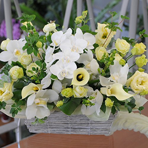 蘭の花を使った お供え お悔やみアレンジメント (白を中心に, 2Lサイズ)