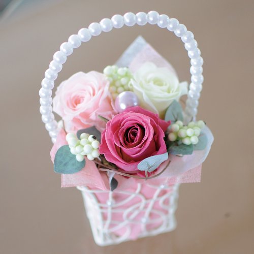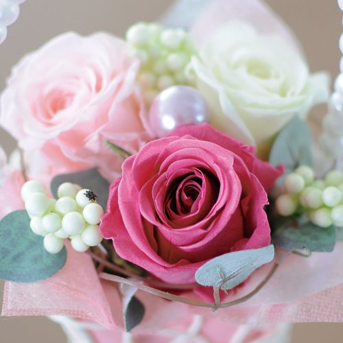 みずみずしい生花の風合を保つ花 エーデルワイス 【ローズパーティーパステル-ピンク】 プリザーブドフラワー 枯れないお花