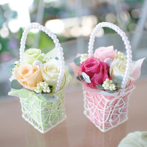 生のお花を、美しい姿で長時間保存することができるよう専用の溶液を用いて加工されておりますので、香りはありませんが、みずみずしい生花の風合いが保てます。加工してありますので、花粉が飛ぶこともなく、水を与える必要がありません。しかし、湿気に弱く、紫外線は色褪せの原因にもなりますので、直射日光を避けて飾って下さい☆