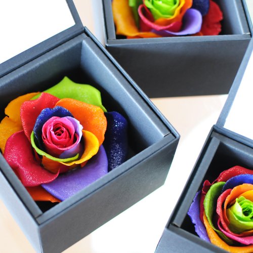 - バラ直径 約6.5cm 箱サイズ 約よこ8.5cm たて8.5cm 高さ6.3cm ※色の組み合わせは選べません。