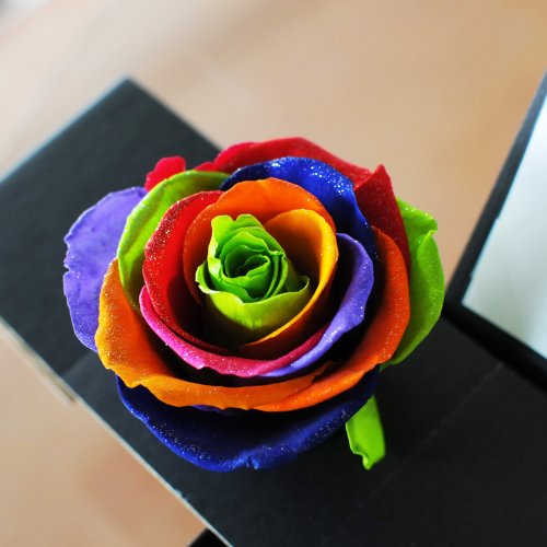 幸運を呼ぶ7色のバラが煌めく、クリスマスにぴったりのプレミアムな商品です。本物の天然ダイヤモンドとラメが、レインボーローズに上品な輝きをプラス。プリザーブドフラワーですので、生花のようなみずみずしい風合いのまま、長期間お楽しみいただくことができます。高級感のあるボックスに入れて、ダイヤモンド使用の証明書(ギャランティカード)をお付けしてお届けいたします。 ※花びらは7色ですが、色の組み合わせはおまかせになります。どの組み合わせが届くかは、お楽しみに♪ 花 フラワー ギフト 専門店「エーデルワイス花工房」が全国に宅配するお祝いアレンジメント♪ 送料無料商品も多数 用途:誕生日 結婚祝い 結婚記念日 プロポーズ 告白 出産祝い 内祝 お見舞い 快気内祝 入学式 卒業式 入学祝い 卒業祝い 退職祝い 歓迎会 送別会 成人式 金婚式 銀婚式 喜寿 米寿 卒寿 還暦 開店祝い 開業祝い 開所祝い 新築祝い 移転祝い 公演会 発表会 楽屋見舞い ビジネス 当選祝い 就任祝い 自宅用 贈答用 配送 配達 郵送 おしゃれ ブーケ 大 ボリューム 花キューピット加盟店 flower gift お年始 愛妻の日 バレンタインデー ホワイトデー ひな祭り 母の日 父の日 お中元 敬老の日 ハロウィン いい夫婦の日 お歳暮 クリスマス お正月 お年賀 即日 急便 1月 2月 3月 4月 5月 6月 7月 8月 9月 10月 11月 12月