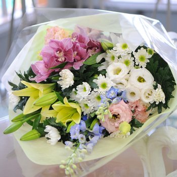 花材はおまかせ。ご予算別の花束です。法事・法要・葬儀等にご利用ください。