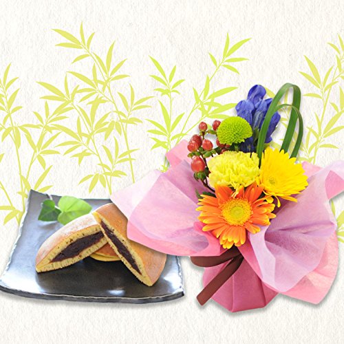 そのまま飾れるブーケとどら焼きのセットギフト。