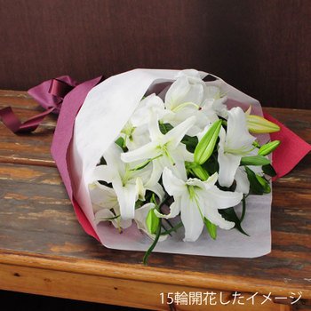 香りの良い百合の女王 カサブランカ 花束 15輪 誕生日他お祝いの贈物に