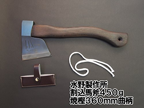水野製作所 越後三条打刃物 焼曲柄 割込 馬斧(バキン)450g 360mm サック入