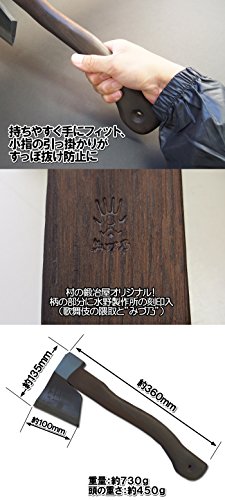 - 使い勝手がよく、薪割りの他焚付用の細い木をつくる際にカッターのように使えるスグレモノ。