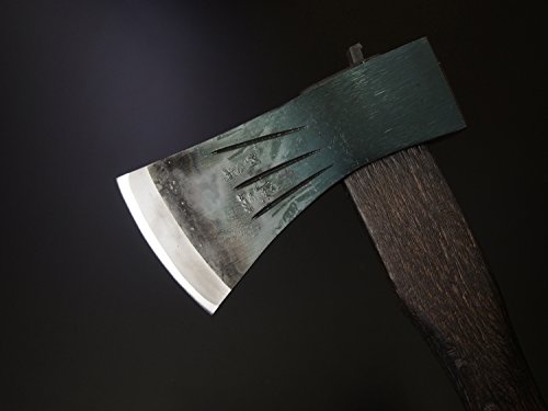水野製作所 越後三条打刃物 割込小斧 焼牡丹柄330mm 皮サック入 010-134