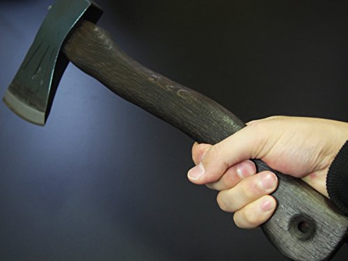 水野製作所 越後三条打刃物 割込小斧 焼牡丹曲柄360mm 皮サック入 010-144