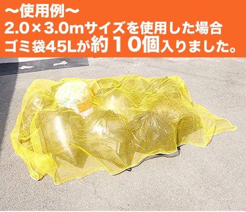 ●漁網の技術を利用した国産網で丈夫さには自信があります!●また、黄色はカラスが嫌がる色ともいわれています。●周囲がオモリ入りロープなのでめくれにくくなっています。●カラスのくちばしも入らない細かい網目