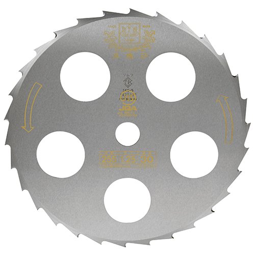 ●【用途】刈払機用チップソー。●【機能・特徴】下刈り、草刈り、笹刈作業にに効果を発揮します。刃が磨耗すればヤスリなどで研磨すれば簡単に切れ味が復活します。穴付で軽量です。【注意事項】刈払機の安全カバーを適切に装着し、防災メガネ、ヘルメット、手袋、長袖、長ズボン、長靴を必ず着用して下さい。作業をする時は、周囲に人がいない事を確認して少なくとも周囲15メートル以内には人を近付けないようにして行なって下さい。
