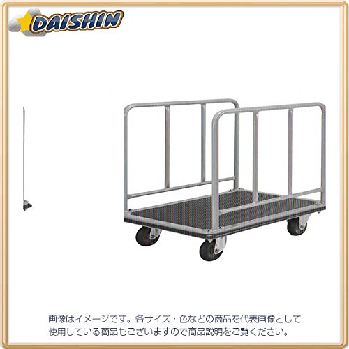 ・(積載面寸法)・全長:900mm、全幅:600mm、(ハンドル部含む)積載荷重:300kg、車輪径:130mm、積載面までの高さ:210mm、(使用時外寸法)・全長:910mm、全幅:610mm、全高:880mm、荷台部:スチール(ハイテン鋼)、ハンドル部:スチール、キャスター部:スチール・ブタジェンゴム、荷台のマットとクッション:塩化ビニール、重量:25kg、製造国:日本