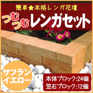 上に重ねて乗せるだけ!簡単!つむつむレンガセット サフランイエロー 36個セット 【レンガ 積み 煉瓦 アンティーク調 古レンガ ブリック レッド 黄レンガ 黄色 ブラウン ミニサイズ レンガブロック ブロック 花壇 アプローチ エクステリア ガーデニング DIY 庭 半日】