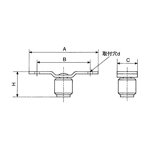 • サイズ(mm):A:137、B:95、C:38、H:51、d:13