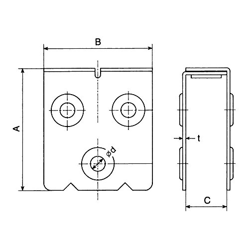 • サイズ(mm):A:112、B:90、C:34~50、d:10、t:2.5