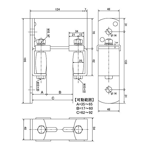 サイズ(mm):※図面に記述 門扉巾17~60mm