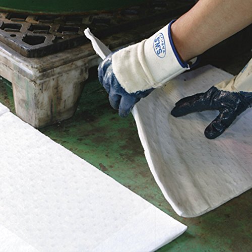 ●【用途】油吸着マット。【機能・特徴】工場内外で油を扱う場所の周りに敷いて使用し、油の飛散、漏洩を防ぎます。重層構造に圧着されたポリプロピレンシートが優れた吸収性と高い保有性で吸収した油を保持します。中央にミシン目が入っているので半分にカットして使用も可能です。油専用吸着マットです。水はほとんど吸いません。【材質】本体:ポリプロピレン。【付属品・セット内容】黄色い高密度ポリエチレンの廃棄用ごみ袋1枚付属。【注意事項】油、溶剤等の吸収後は、吸収した液体の各地域条例等に基づいて適切に処分して下さい。屋外にて長期にご使用になられる場合は、定期的な点検をお願い致します。ポリプロピレン製のオイルガードは、火に近付けても燃え上がりません。また、焼却しても有毒ガスが発生しない為、環境にもやさしい素材です。吸収量はあくまでも目安です。吸収する液体の性質により異なります。
