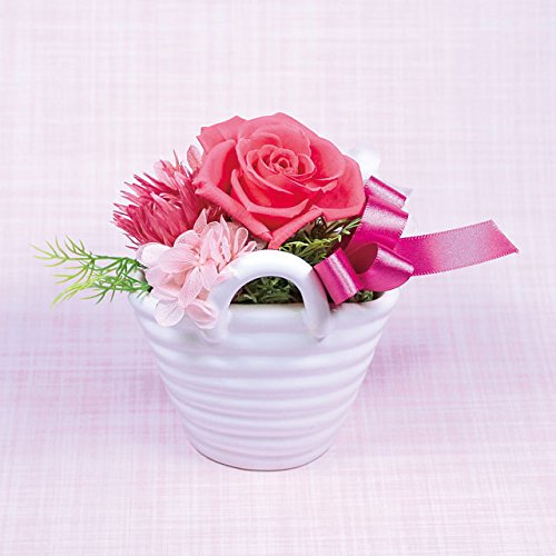 ◆上品な白の陶器にお花を合わせてエレガントに仕上げました。小ぶりなサイズが派手すぎず、さりげなく置けるブリザーブドフラワー バスケット です。