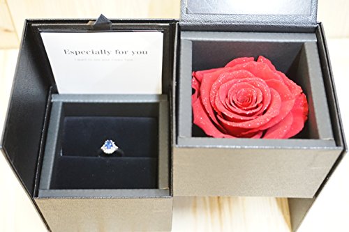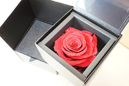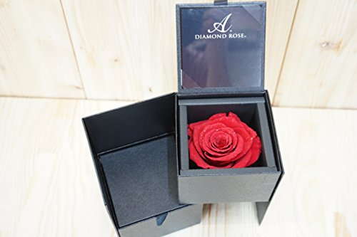 ダイアモンドローズはプリザーブドフラワーのバラに特殊なダイアモンドのパウダーを使用して加工した商品となっております。 高級感のある質感のボックスに入っております。