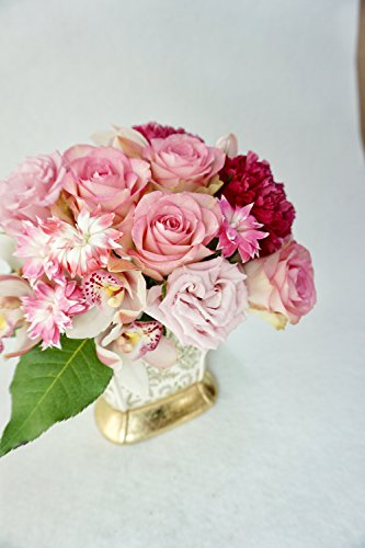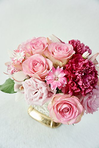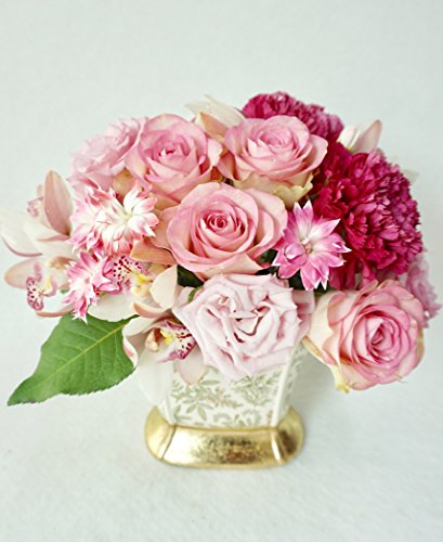 - 陶器の器にお花を挿したアレンジメントなので、そのまま飾れます。お花はラッピングをしてお届けいたします。
