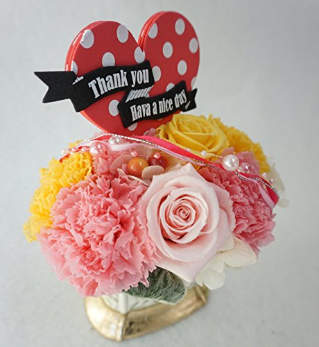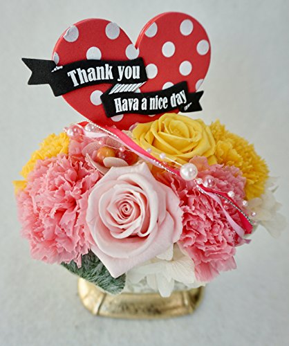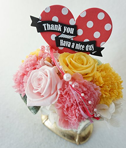 - 四方見:サイズ:高さ13センチ、横約12センチ、奥行き約12センチ プリザーブドフラワーを使用しておりますので4〜5年この状態で保管可能です。