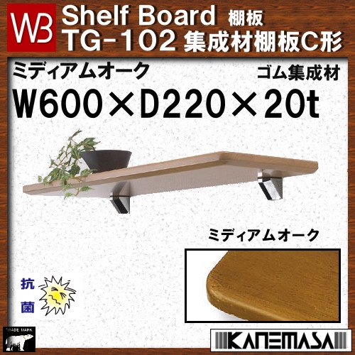 集成材棚板C形 【白熊】 WB TG-102 サイズ:W600×D220×t20 ミディアムオーク