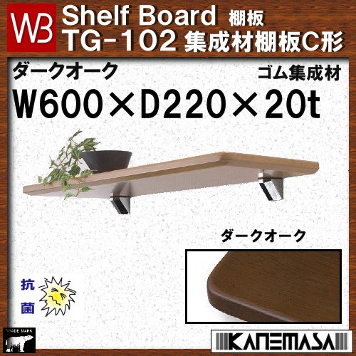 集成材棚板C形 【白熊】 WB TG-102 サイズ:W600×D220×t20 ダークオーク