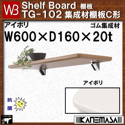 集成材棚板C形 【白熊】 WB TG-102 サイズ:W600×D160×t20 アイボリ