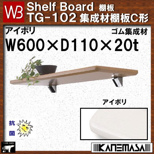 集成材棚板C形 【白熊】 WB TG-102 サイズ:W600×D110×t20 アイボリ