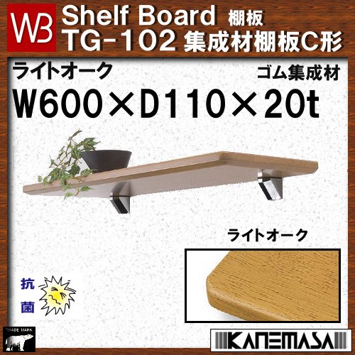 集成材棚板C形 【白熊】 WB TG-102 サイズ:W600×D110×t20 ライトオーク