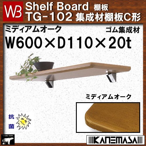 集成材棚板C形 【白熊】 WB TG-102 サイズ:W600×D110×t20 ミディアムオーク