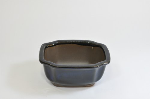 信楽焼 生子深藍色 盆栽鉢 4号 幅 12 cm × 高さ 6.5 cm