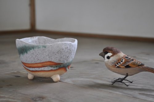 信楽焼 白掛三ツ足 山野草鉢 4号 幅11cm×高さ7cm
