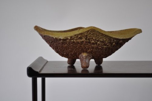 信楽焼の特徴は、土中の鉄分が赤く発色する火色や、窯のなかで炎の勢いにより器物に灰のふりかかる、灰かぶりの現象による自然降灰釉(ビードロ釉)の付着、また、薪の灰に埋まり黒褐色になる「焦げ」も含めた、炎が生み出す独特の焼き上がりにあるといわれています。