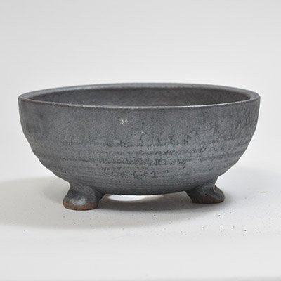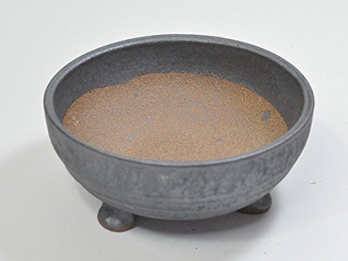 信楽焼 黒変足付丸 盆栽・山野草鉢 5号鉢 幅15cm×奥行き15cm×高さ6.5cm