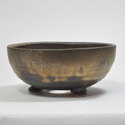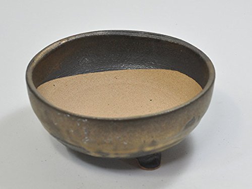信楽焼 金彩足付丸 盆栽・山野草鉢 5号鉢 幅15cm×奥行き15cm×高さ6.5cm