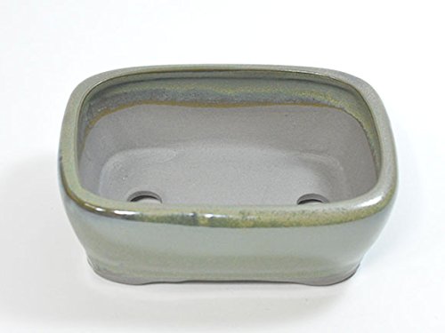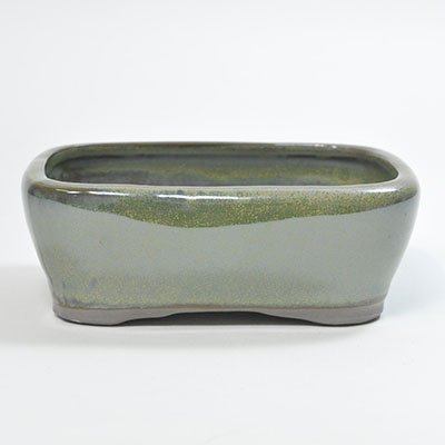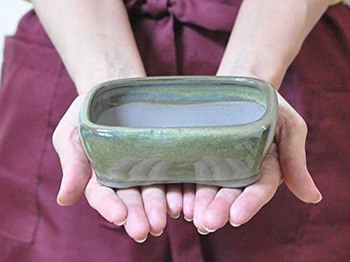 • 玉虫のような光沢のある薄緑色の丸みを帯びた長方形の鉢です。植えられた盆栽がさらに高級感を増す一品となるでしょう。内縁。段足。 幅13cm×奥行10cm×高さ4cm
