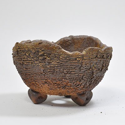 • 縄文土器を彷彿とさせるような器肌と色合い。少しくせのある脚がまた魅力的です。6号サイズもございます。 幅16cm×奥行き16cm×高さ10.5cm