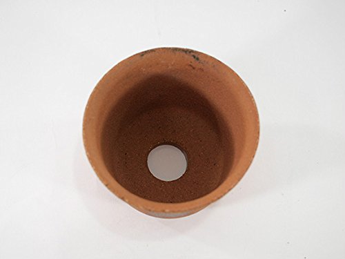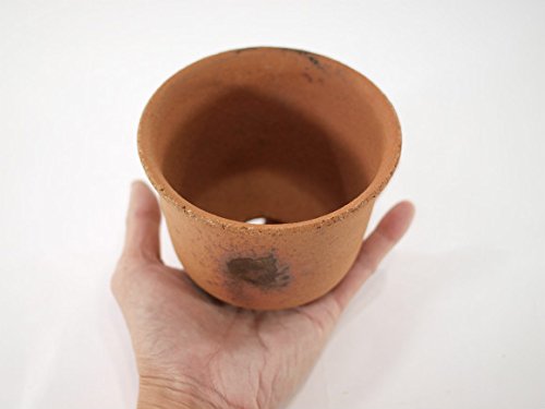 - 素焼きの優しい風合いにわざと吹き付けたような釉薬がアクセントになって古さを醸し出しています。素焼きは通気性もよく植物の生育にとても良い鉢です。