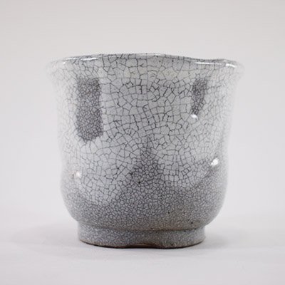 冬を連想するかのような色合いです、貫入(ヒビ模様)が良い雰囲気。和の趣があり、マツ類にも似合います。