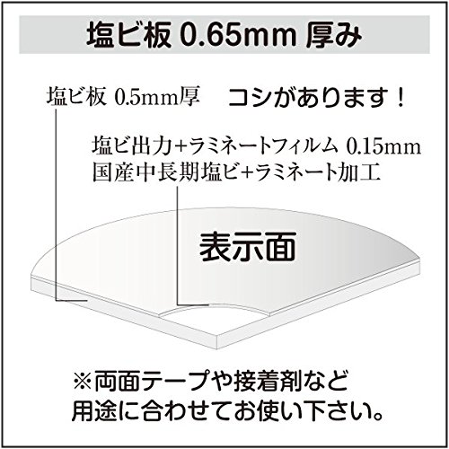 - 素 材:国産中長期メディア+表面UVラミネート加工+塩ビ板0.5mm貼り込み 軽くてコシが有るので歪曲した場所にも、両面テープや接着剤で取付できます。