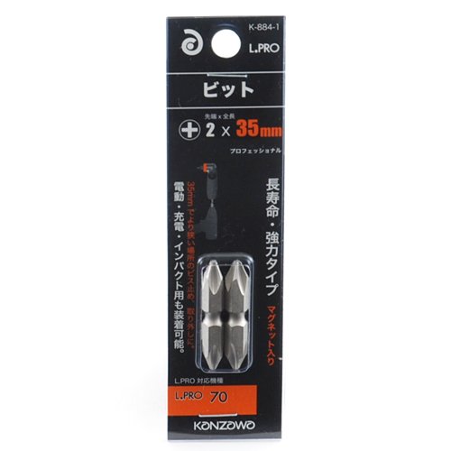 ●長寿命・強力タイプのビットです。●【用途】●替ビット。●【機能・特徴】●L.PRO-70用替えビット(マグネット付)です。●35mmでより狭い場所のビス止め、取り外しに最適です。●国内で市販されているほとんどの電動・充電・インパクトドライバーに装着して使用できます。●電動・充電・インパクト用も装着可能です。●【仕様】●ビット両頭+NO.2×35mm。●六角対辺:6.35mm。●マグネット入。●2本入。●L.PRO対応機種:L.PRO70。●【商品サイズ】幅13×高さ35×奥行7mm 重量20g●商品コード:4976226884020●JANコード:4976226884020●ブランド名:神沢●商品名:L.PRO用ビット●規格:K-884-1